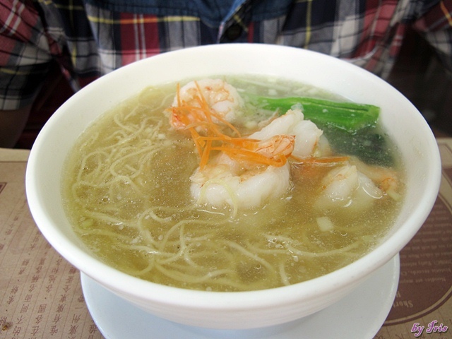 除了有四隻超大的蝦子還有加青菜 雲吞麵比起來就樸素了點~(笑)