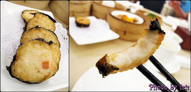 查了之後發現原來是有加髮菜、陳皮、醃料攪拌成有點膠狀再沾粉拿去炸的